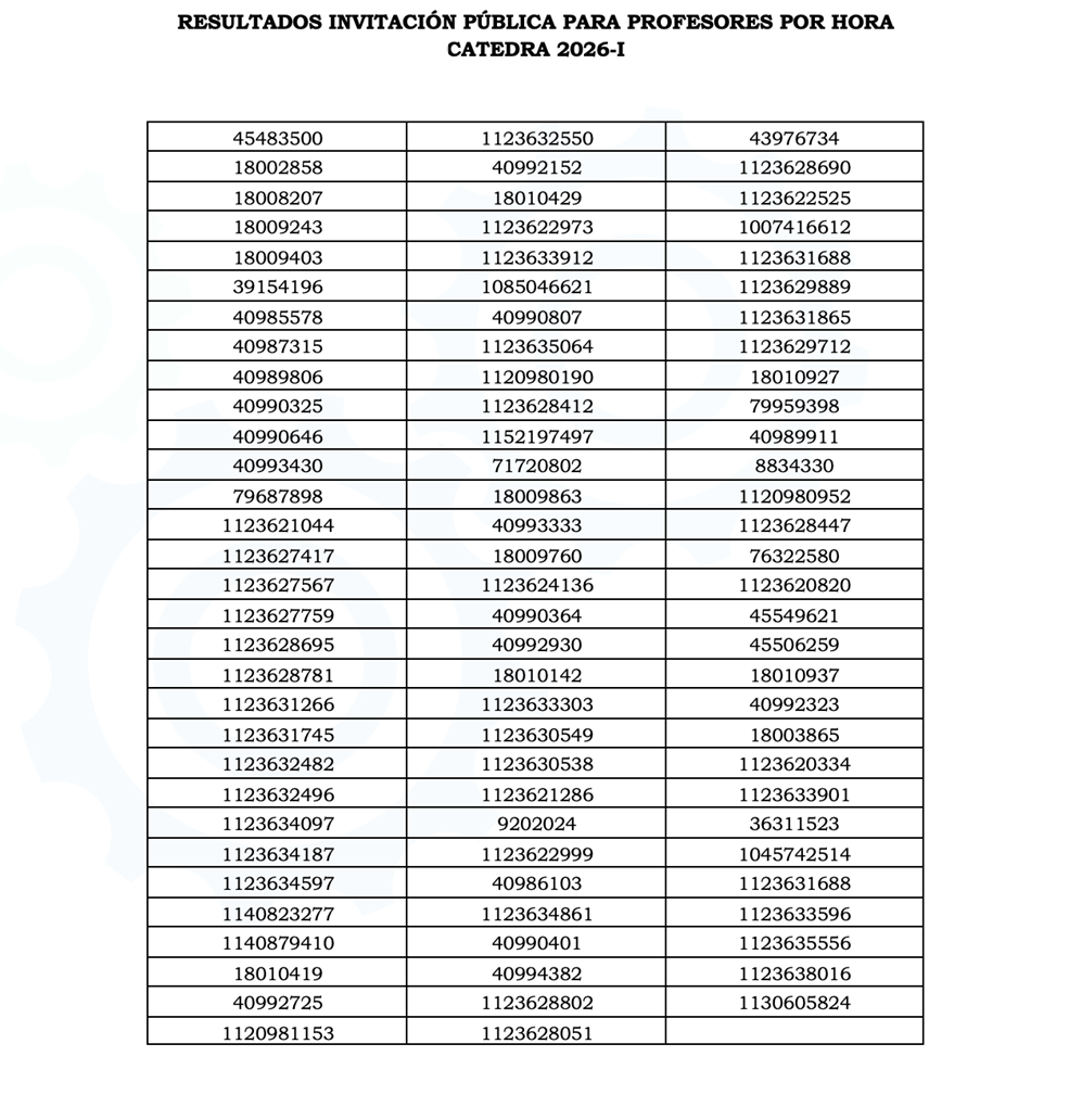 La institución informó que los docentes seleccionados recibirán comunicación oficial por parte de la Coordinación Académica, en la cual se detallará el proceso de formalización de la vinculación y las jornadas de inducción correspondientes. Asimismo, se invita a los profesionales a estar atentos a los correos electrónicos suministrados durante el proceso de postulación y, en el caso de docentes antiguos, a su correo institucional.