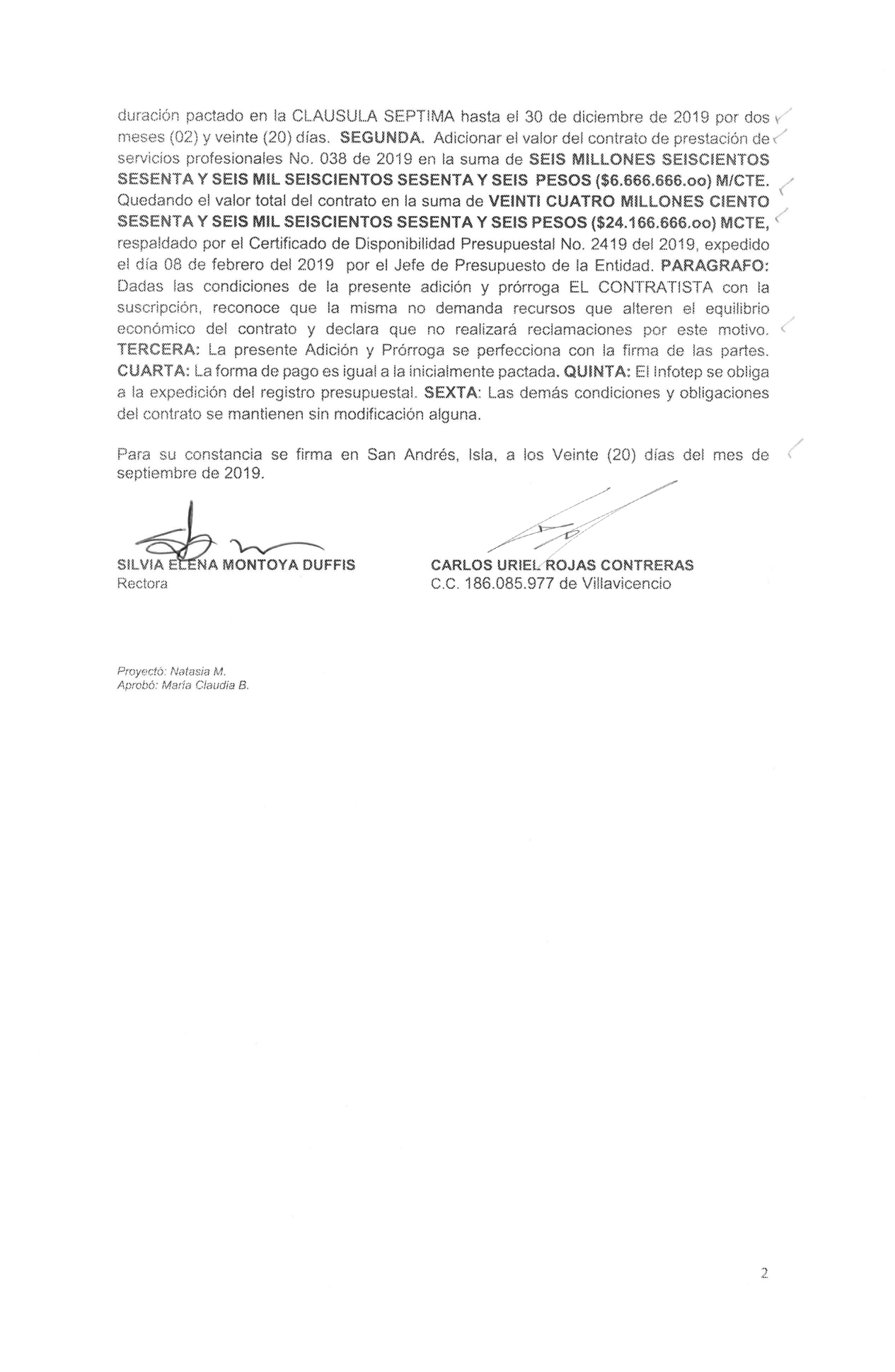 pdf 024 2019 ADICION Y PRORROGA 001 ADRIANA MARIA WILLIAMS ECHEVERRY ( pdf, 1023 KB ) (792 descargas) Popular