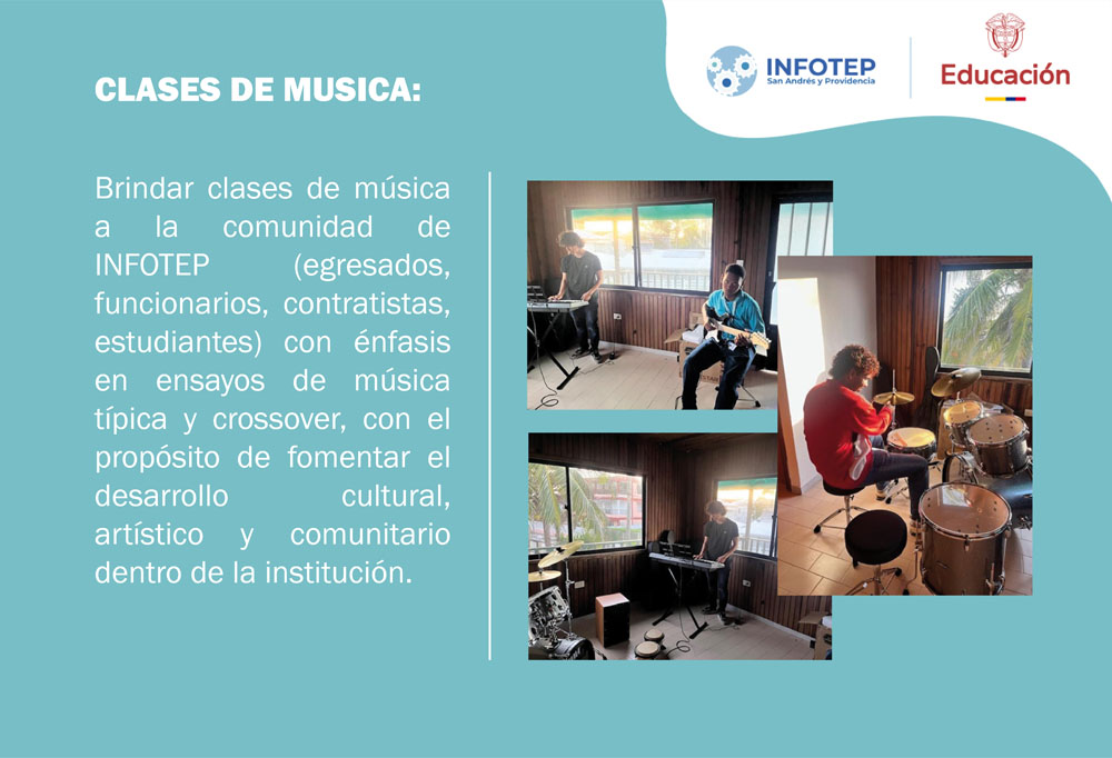El programa de Arte y Cultura del INFOTEP, nace de la necesidad de complementar la educación integral de los estudiantes y toda la comunidad educativa del instituto por medio de acciones y objetivos que contribuyan al quehacer de la identidad cultural.