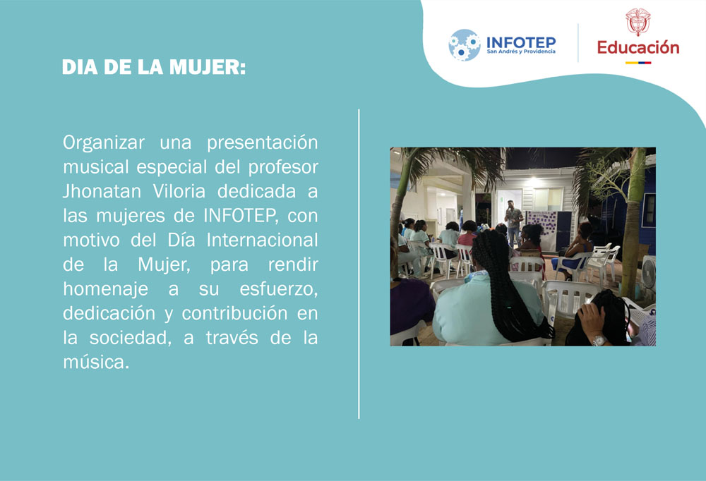 En el Instituto Nacional de Formación Técnico Profesional INFOTEP, es de vital importancia motivar e incentivar a toda la comunidad educativa en el conocimiento y rescate de la cultura isleña y las fechas importantes por medio de actividades lúdicas: